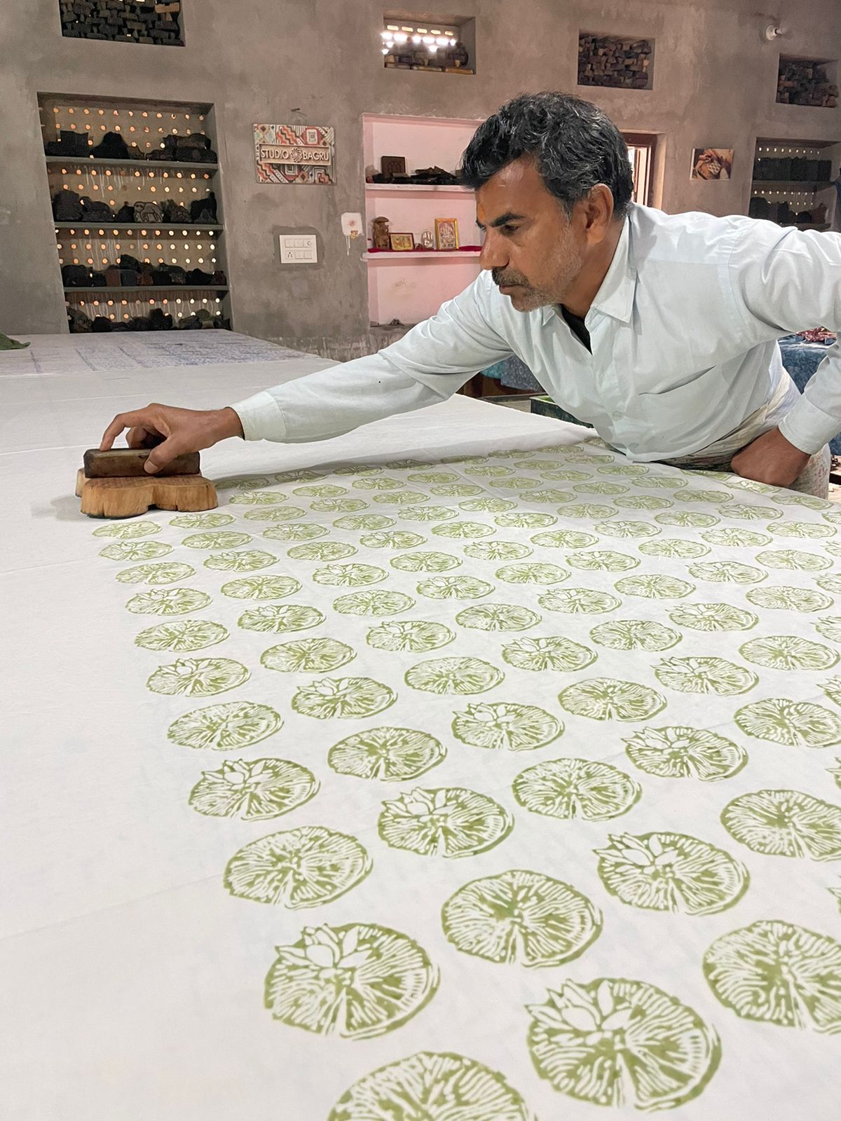 Today, about 200+ chippa families can be found in Bagru, almost all of whom are still block printers with each family having multiple family members involved in the different stages of the textile creation process. Many of the Chippas in Bagru are 7th, or 8th, or 9th generation printers. It is more than a family business. It is the heart & soul of the community.